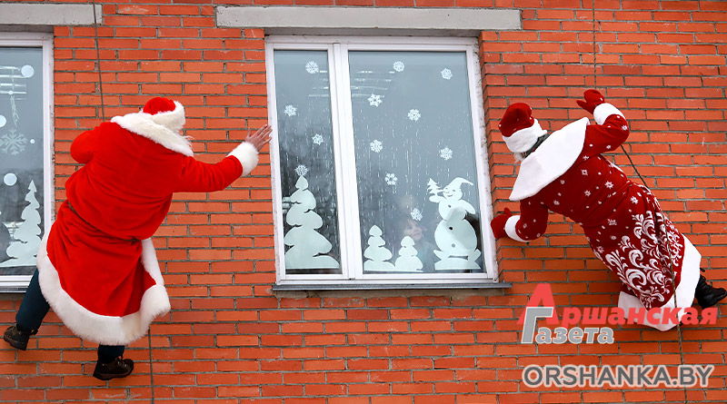 Чтобы дети не перестали верить в чудо, спасатели не стали раскрывать свои образы и до самого ухода были настоящими сказочными героями. Но мы знаем, что в роли веселых Дедушек выступали работники Оршанского ГРОЧС, увлекающиеся альпинизмом. Это начальник дежурной смены ПАСЧ № 7 Александр Лавников, старший инструктор-спасатель ПАСЧ № 2 Сергей Гурский и старший помощник начальника ЦОУ штаба ЛЧС Илья Борозднов. Спасатели прошли специальную подготовку для выполнения работ на высоте. Не стоит забывать, что такой «десант» связан с риском для жизни, и не рекомендуется любителям повторять подобные трюки.
