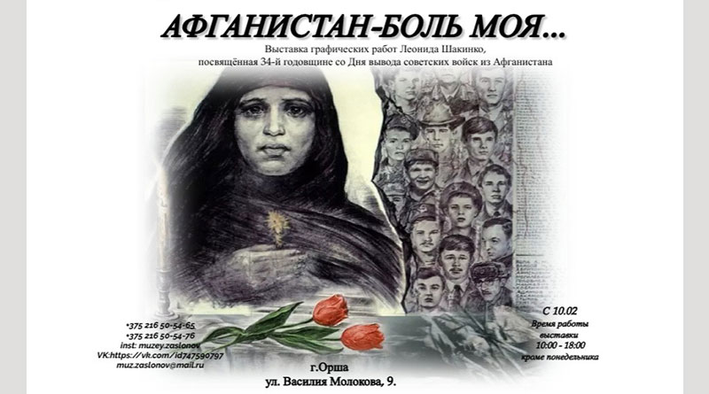 В Военно-историческом музее имени Героя Советского Союза К. С. Заслонова 10 февраля в 15.00 состоится торжественное открытие выставки графических работ белорусского художника Леонида Шакинко «Афганистан – боль моя…» из фондовых собраний учреждения культуры «Витебский городской музей воинов-интернационалистов».
