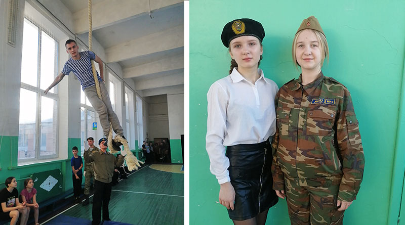 Юнармейский отряд «Витязь» особенно поразил зрителей, продемонстрировав фигурные маршировки, строевые команды и гимнастические выступления. Руководитель юнармейского отряда Василий Зинкович рассказал, что подобные мероприятия на Оршанщине были популярны среди советских школьников. Позже о них позабыли. Но в Крапивенской школе они проводятся вот уже 40 лет. Когда было много детей, строевой конкурс проводился по классам. Каждый класс на период подготовки к смотру превращался в юнармейский отряд. Так как сейчас меньше учащихся, проводятся общешкольный строевой смотр и военно-спортивный праздник, куда включаются силовые, гимнастические и строевые упражнения.