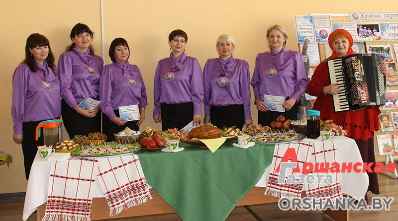 В фойе центра культуры гостей встречали выставка авторских работ участников народного клуба художников-любителей «Ренессанс», презентация блюд белорусской кухни от народного клуба национальной кухни «Гаспадынька», участницы народного любительское объединения «Женские секреты» раскрыли секреты молодости и здоровья, а аккомпаниатор народного семейного клуба «Надзея» Вероника Мельницкая пела и читала стихи.