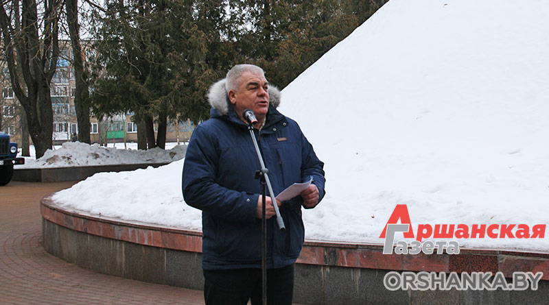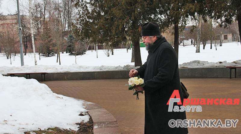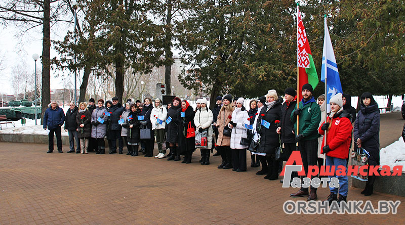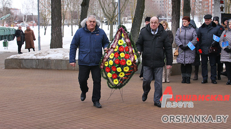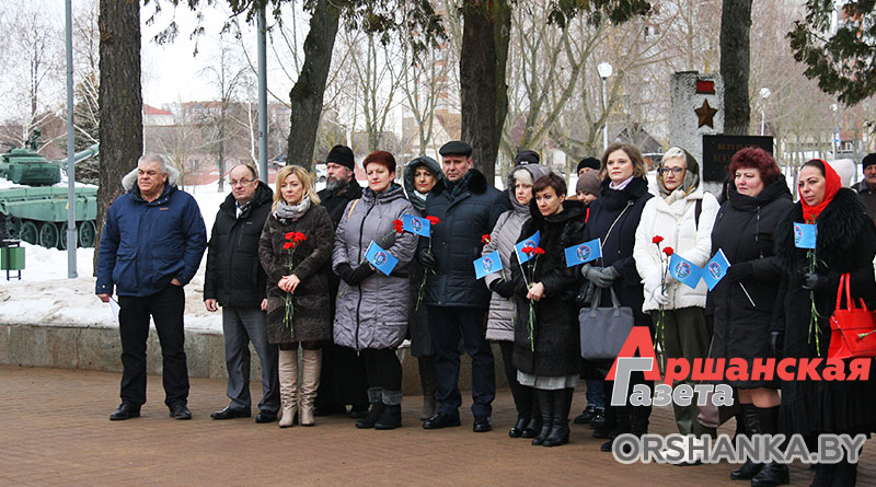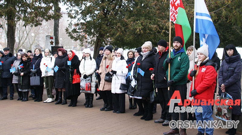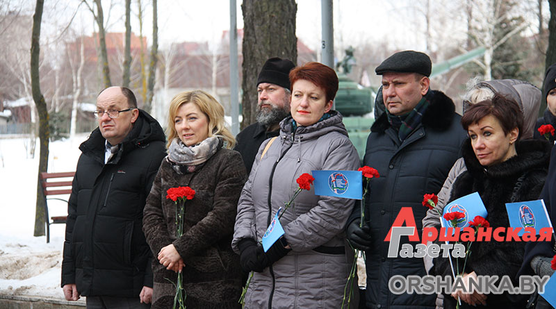Возложить цветы и венки к памятнику, а также почтить память героев, погибших в годы Великой Отечественной войны, пришли председатель Оршанского районного Совета депутатов Анатолий Сильченко, заместитель председателя Оршанского райисполкома Василий Муренков, главный специалист отдела идеологической работы и по делам молодежи Оршанского райисполкома, председатель правления Оршанской районной организации «Белорусский фонд мира» Игорь Шарай, благочинный церквей Центрального благочиния г. Орши иерей Дмитрий Савушкин, председатель районной организации профсоюза госучреждений Татьяна Тишкова, профсоюзный актив и союзная молодежь района.