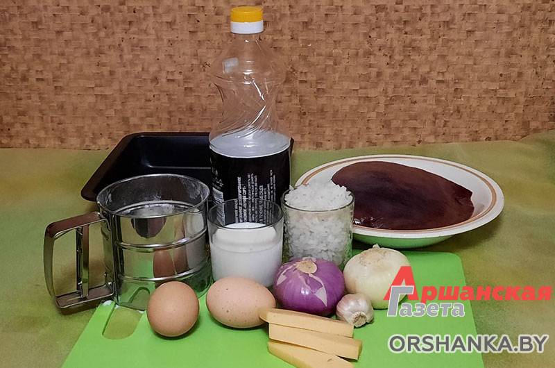Для приготовления нам понадобится: печень (говяжья или свиная) – 600 г, молоко – 0,5 стакана, рис (вареный) – 1 стакан, яйцо куриное – 2 шт., мука – 2 ст. л., сыр твердый – 70 г, лук репчатый – 2 шт., чеснок (по желанию) – 2 зубчика, соль и перец по вкусу, масло подсолнечное.