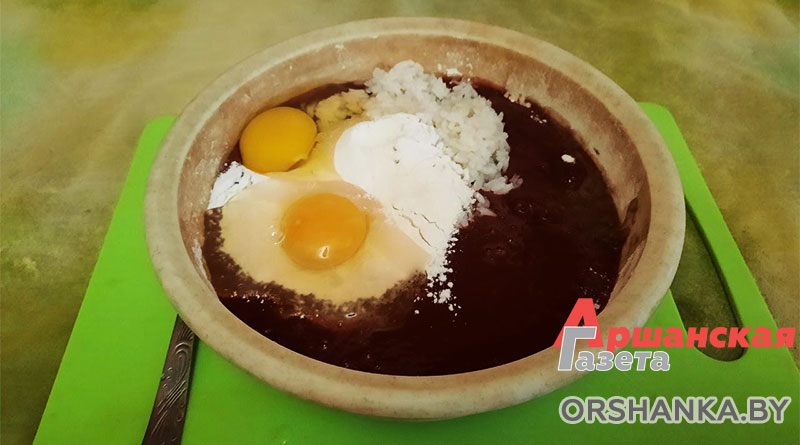 К этой массе добавить вареный рис и муку. Влить молоко, посолить и поперчить по вкусу. Отделить желтки от белков. Желтки добавить в печеночную массу, все хорошо вымешать. Белки взбить, а затем аккуратно подмешать в печеночную массу.