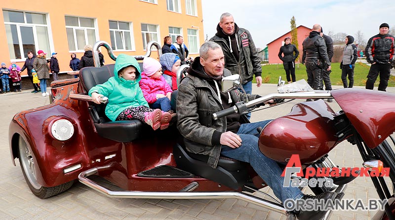 Незабываемым событием для малышей стало катание на мотоциклах во дворе центра. К слову, многие из воспитанников учреждения катались на таком транспорте впервые, и уж тем более на таком эксклюзивном, как авторский трайк «Vampal-320» братьев Андрея и Валерия Живуцких, несколько моделей Harley-Davidson, в том числе кастомных, и других интересных байках.