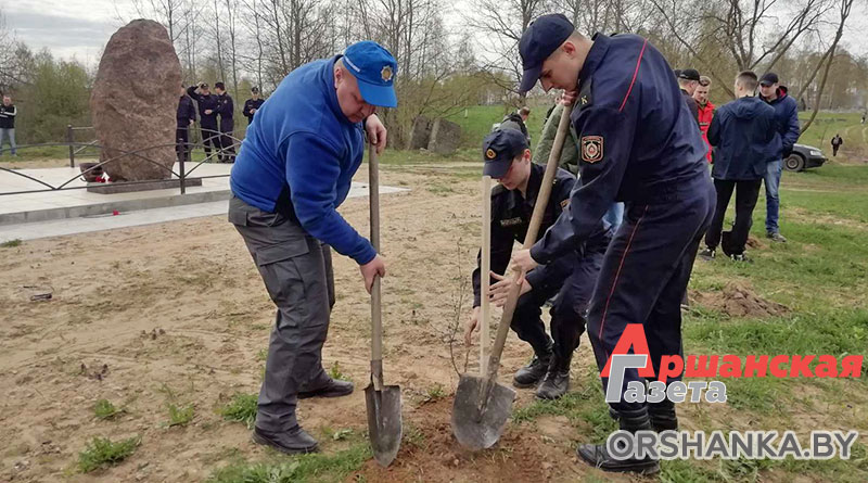Перед началом работ сотрудники милиции провели митинг-реквием, посвященный тем страшным событиям, почтили память погибших минутой молчания, возложили цветы к монументу. Первое деревце с курсантами академии МВД Республики Беларусь и Могилёвского института МВД посадил начальник Оршанского РУВД Сергей Барвянков. Всего в этот день было посажено более 100 саженцев берез по размеченным колышками двум одинаковым равносторонним треугольникам в форме шестиконечной звезды Давида – древнего символа еврейского народа.