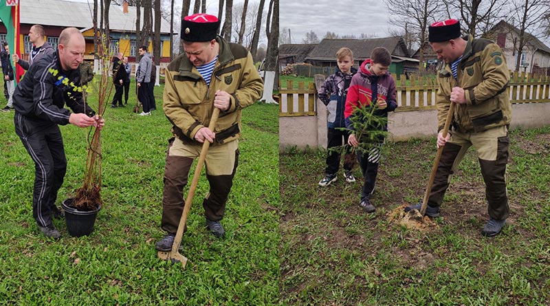 Правоохранители доехали до братской могилы в деревне Пищалово, где вместе с учениками Юрцевской школы они посадили деревья, убрали от мусора захоронение и облагородили прилегающую территорию.