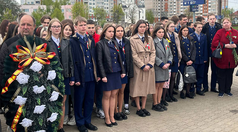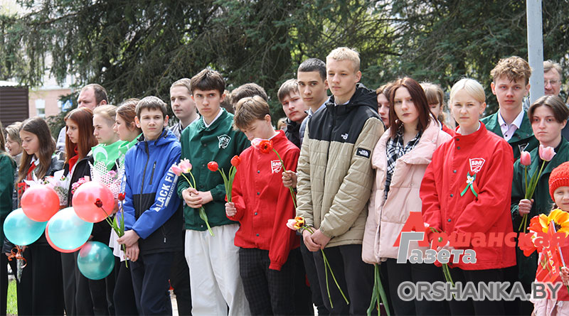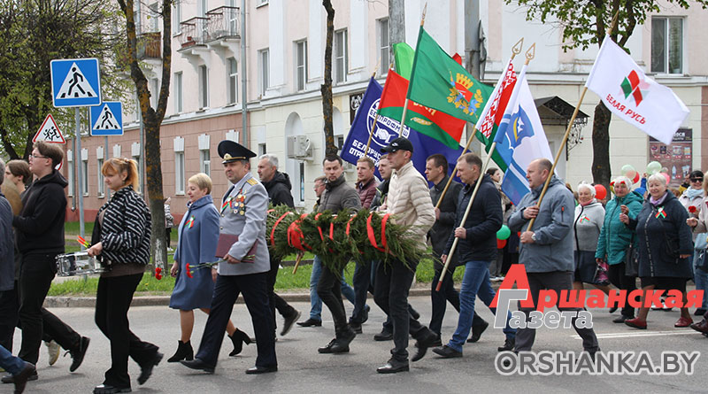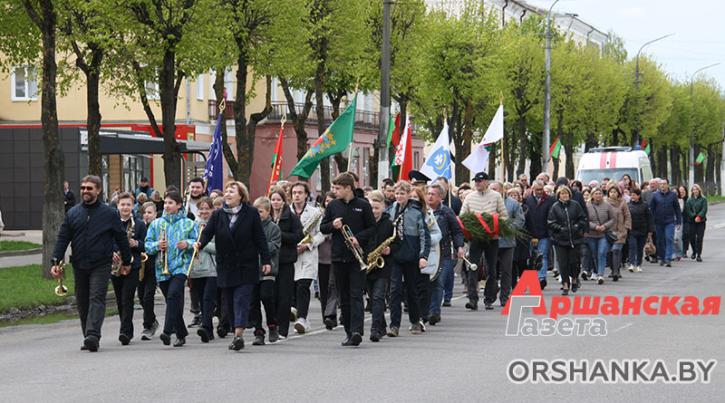 Дружной колонной текстильщики прошли от проходной предприятия к памятному знаку работникам Оршанского льнокомбината, погибшим во время Великой Отечественной войны.