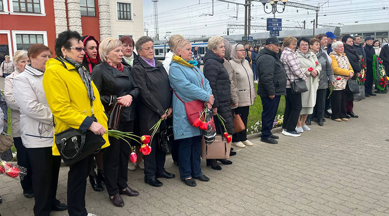 Торжественный митинг, посвященный 78-й годовщине Великой Победы состоялся и на привокзальной площади у памятника Константина Сергеевича Заслонова.