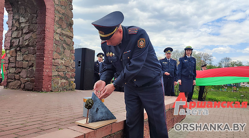 Накануне праздника у Памятного знака в честь основания города Орши собрались сотрудники органов внутренних дел Оршанского гарнизона и почетные гости. Место было выбрано неслучайно. Именно отсюда город начал свою историю.