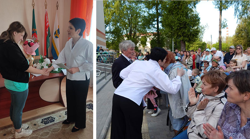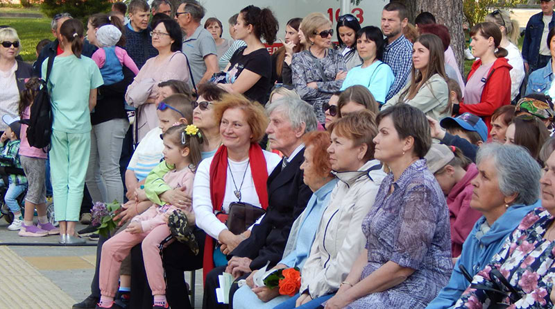 Вечером на центральной площади у Дворца культуры собрались жители города, в том числе и многодетные семьи. Управляющий делами Бараньского горисполкома А. Г. Зыблева поздравила гостей с праздником.