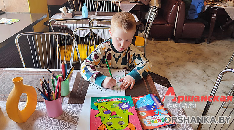 Есть развлечения и для самых маленьких. Пока взрослые заняты беседой, дети могут поиграть или порисовать. В кафе есть карандаши, раскраски и настольные игры.