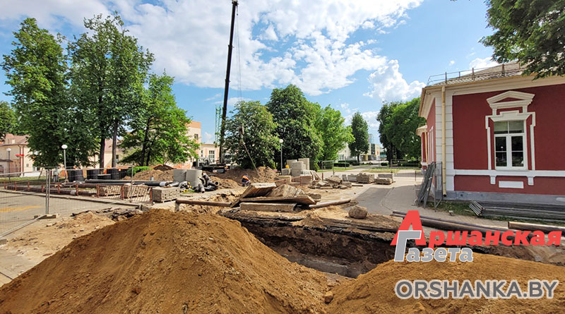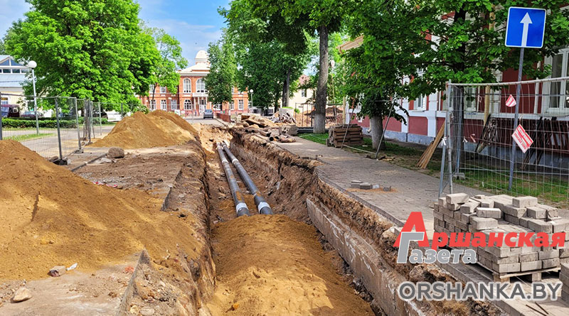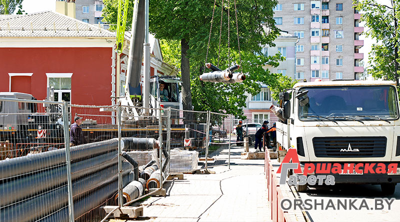 На данный момент ведутся земляные работы на территориях, прилегающих к Оршанской городской СДЮШОР, гимназии № 2 и станции скорой помощи. Идет укрупнительная сборка с последующим монтажом ПИ-труб.