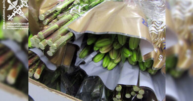В первом случае на участке дороги Р75 витебские таможенники остановили для проверки транспортное средство VOLVO. Водитель авто предъявил документы на перемещаемые OSB плиты. Однако при проведении досмотра сотрудники таможни обнаружили более 9 тонн свежих груш, которые были спрятаны в специально изготовленных ящиках из этих же плит.