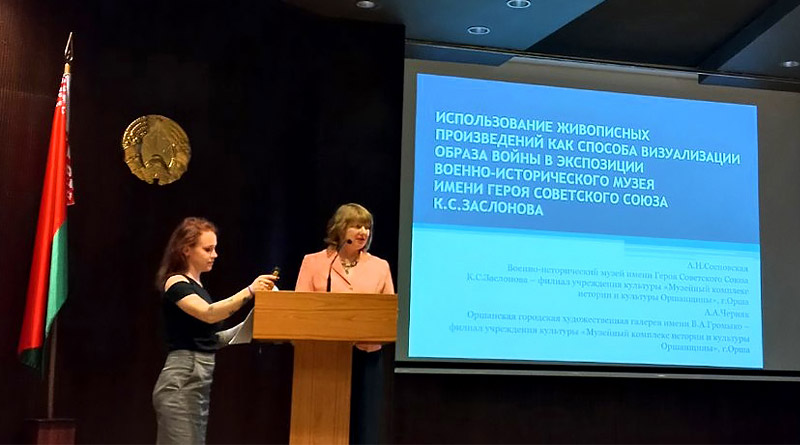 Оршанские музейщики регулярно участвуют в подобных мероприятиях, но в этот раз выступление прошло в необычной форме. Работу конференции открыл доклад об использовании живописных произведений как способа визуализации образа войны в экспозиции Военно-исторического музея имени Героя Советского Союза К. С. Заслонова. Его представили сразу два филиала Музейного комплекса истории и культуры Оршанщины – ВИМ К. С. Заслонова и Оршанская городская художественная галерея В. А. Громыко.
