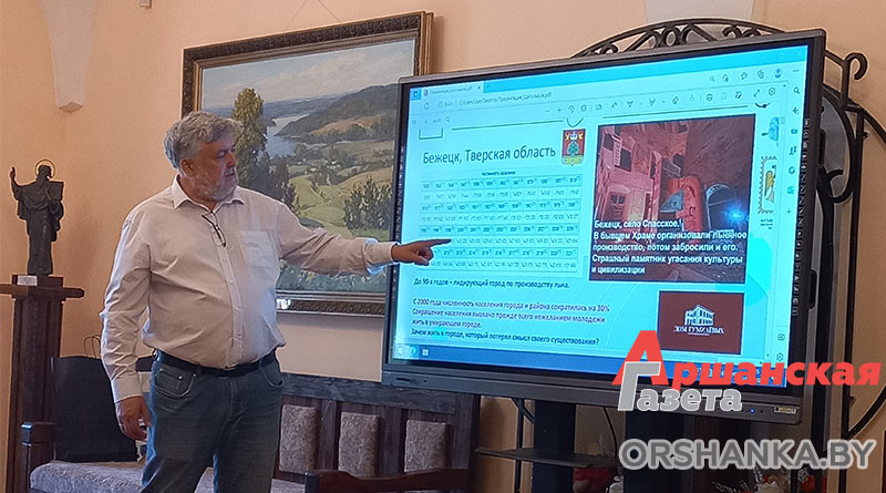 Юрий Юрьевич провел видеопрезентацию и экскурсию по выставке. Как отметила старший научный сотрудник Оршанской городской художественной галереи В. А. Громыко Наталья Качанова, он познакомил зрителей с историей и жизнью провинции, привлек внимание посетителей к жизни небольших городов, к исчезающим объектам истории и православной культуры.