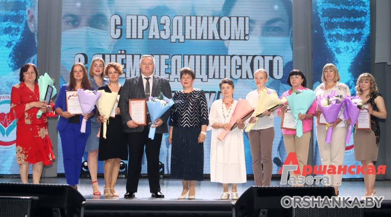 В ГДК «Орша» состоялось чествование коллективов учреждений здравоохранения Оршанского региона с участием председателя райисполкома Игоря Мороза и его заместителя Виктора Колочёва, депутата Палаты представителей Национального собрания Республики Беларусь Инны Крачек, старшего благочинного церквей Оршанского округа Валерия Серко, председателя Оршанского районного объединения профсоюзов Оксаны Пустошило.